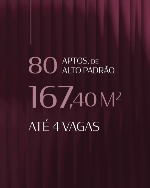 Com ambientes cuidadosamente planejados, o empreendimento oferece apartamentos amplos de 167,40 m², com até 4 vagas de garagem, depósitos individuais de 2 m² e 2 subsolos, garantindo praticidade, organização e comodidade no dia a dia.